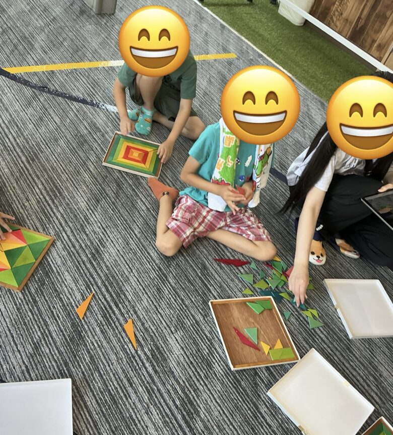木でできた色々な形や色のピースを組み合わせていきました!慣れてくるとピースの細かい少し難しめなパズルに挑戦していました💯