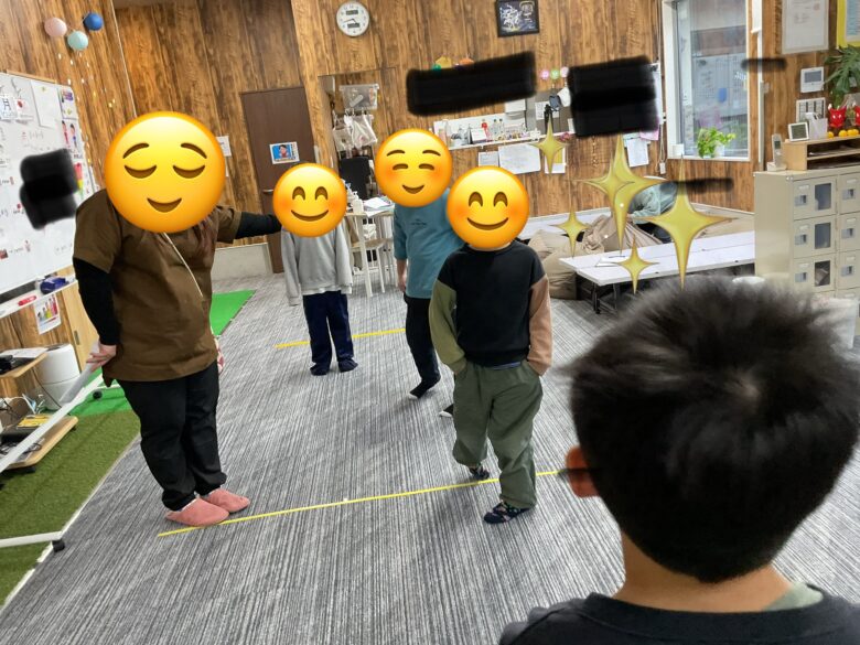 順にお題を伝えていき、最後尾のお友だちが発表しみんなで正解か確認しました😁