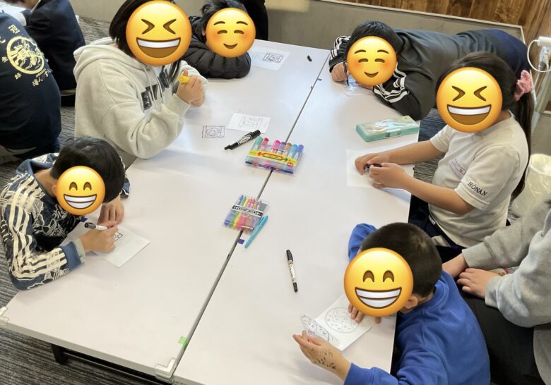 色塗りも自分なりに塗っている子をいれば、見本と同じに塗ってみたり…